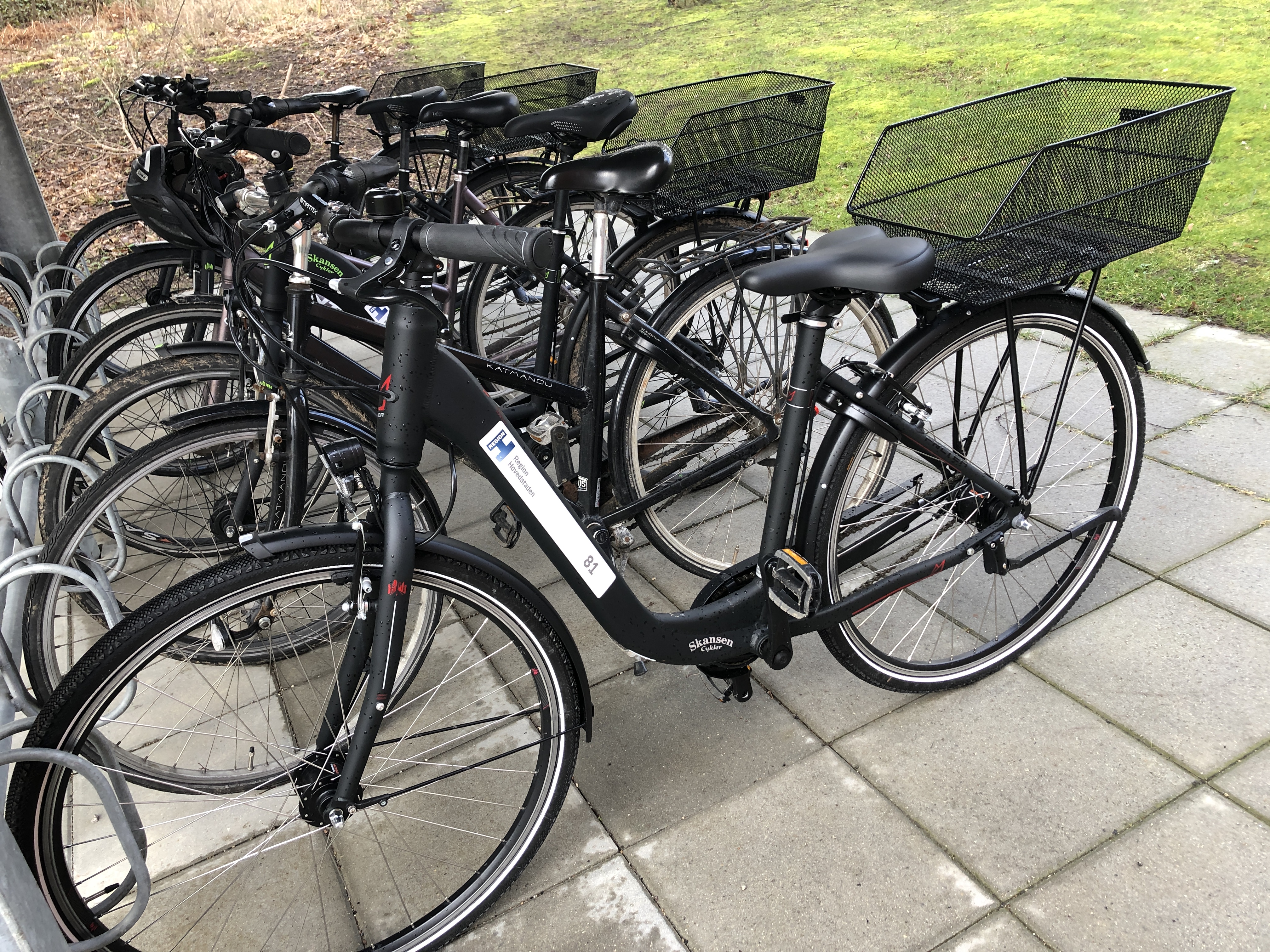 Lige i øjeblikket har vi 105 cykler. 50 af dem er funktionærcykler og 55 er håndværkercykler. 35 af håndværkercyklerne er Christianiacykler med el, og 20 af dem er Jensen-cykler, hvor der er en lille kasse foran i stedet for en cykelkurv.